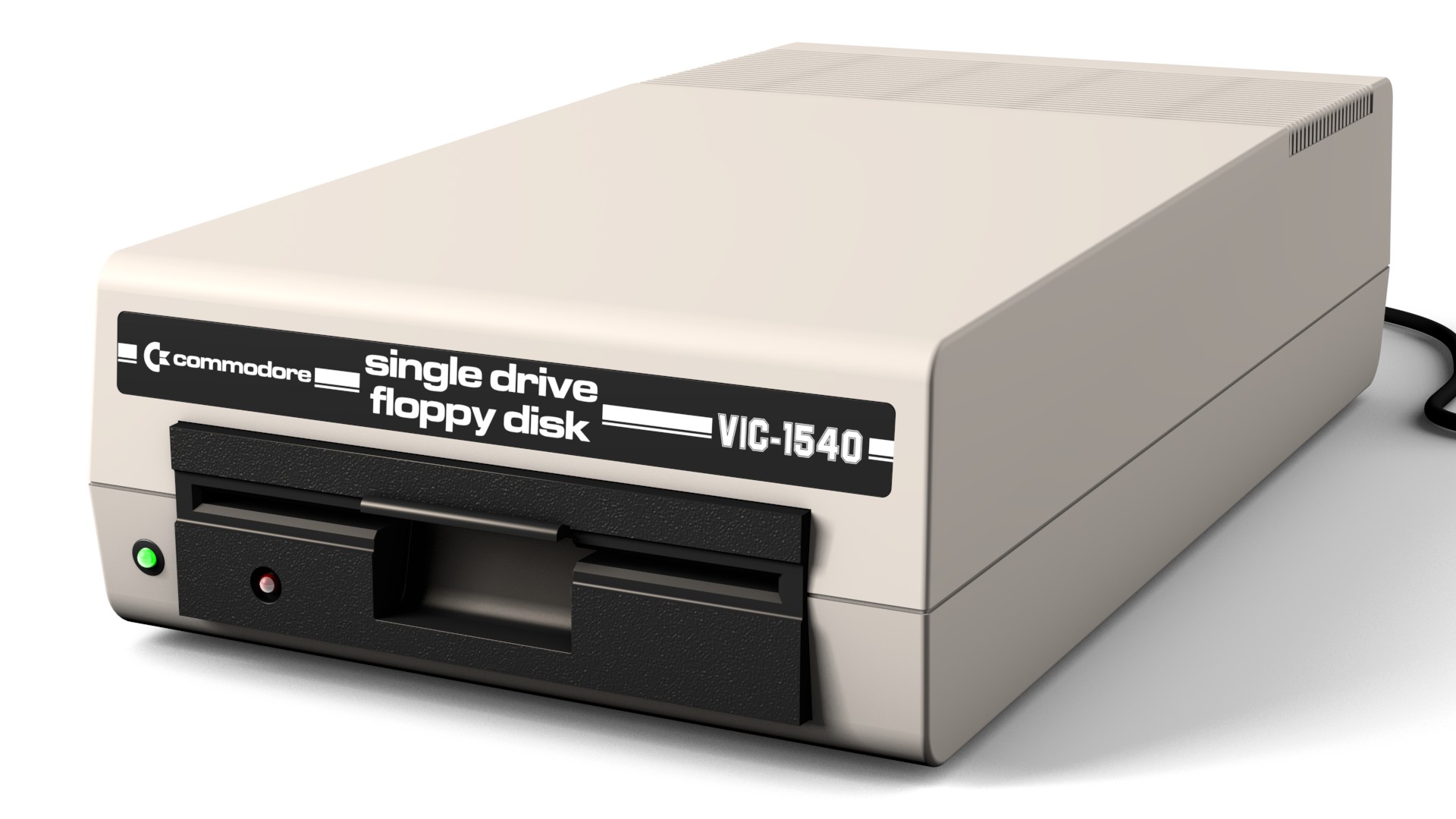 Als man den VC-20 konzipierte, war klar, dass er auch ein günstiges Diskettenlaufwerk bekommen sollte. Man entschloß sich kurzerhand, das Busprinzip und die Funktionsweise der CBM-Laufwerke beizubehalten, aber ein Laufwerk zu entfernen und das ganze etwas kompakter zu verpacken. Heraus kam die 1540, ein Laufwerk, welches normale 5,25" Disketten verwendet und diese einseitig mit 35 Spuren mit einer Gesamtkapazität von insgesamt etwa 170 KByte beschreibt.