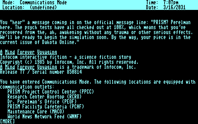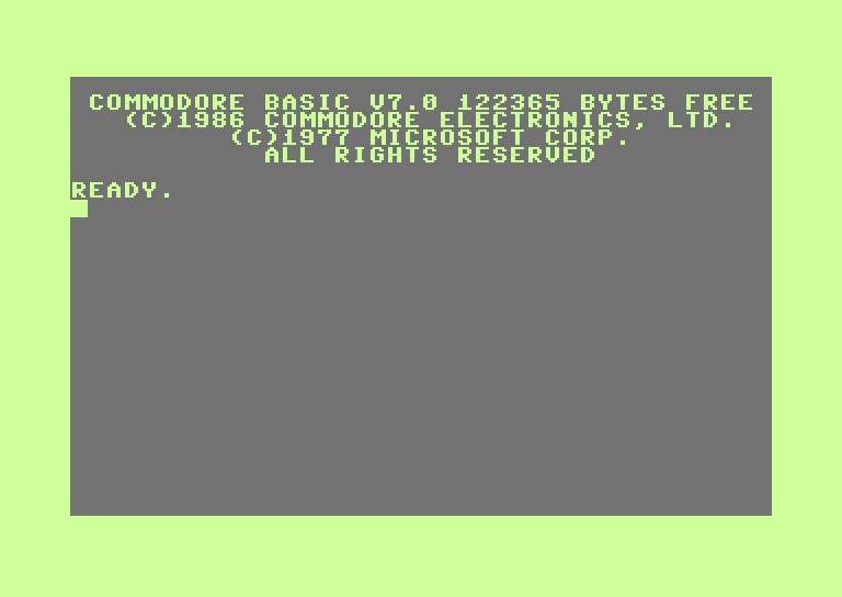 Sobald man den Rechner einschaltet, wird man von einer Einschaltmeldung begrüßt, die 122365 freie Basic Bytes meldet. Dieser Speicher ist, bedingt durch den nur 64 Kbyte großen Adressraum des Prozessors, nicht wirklich zusammenhängend ansprechbar; mittels einer MMU wird zwischen zwei 64 KByte Bänken umgeschaltet. Die MMU ermöglicht es auch, eine sogenannte Common Area einzurichten, die einen Speicherbereich einer anderen Speicherbank enthält. Dies ist zur Datenübergabe oder für einen Bankübergreifenden Programmablauf nötig. Der Rechner verfügt auch über einen zur freien Verfügung stehenden ROM-Steckplatz im inneren. Hier kann man selbst bespielte EPROMs bis zu einer Größe von 32 KByte einsetzen.